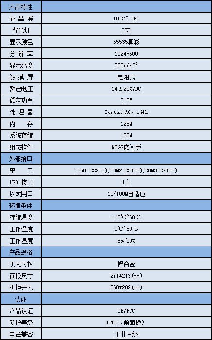 TPC1061Hn,是一套以先進的Cortex-A8 CPU為核心(主頻1GHz)的高性能嵌入式一體化觸摸屏。該產品設計采用了10.2英寸高亮度TFT液晶顯示屏(分辨率1024×768),四線電阻式觸摸屏(分辨率4096×4096),以及具有良好的電磁屏蔽性,美觀堅固的鋁合金結構。同時還預裝了MCGS嵌入式組態軟件(運行版),具備強大的圖像顯示和數據處理功能。