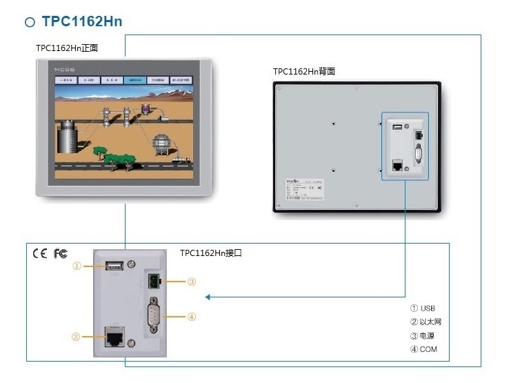 TPC1162Hn,是一套以先進的Cortex-A8 CPU為核心(主頻1GHz)的高性能嵌入式一體化觸摸屏。該產品設計采用了10.4英寸高亮度TFT液晶顯示屏(分辨率800×600),四線電阻式觸摸屏(分辨率4096×4096),以及具有良好的電磁屏蔽性,美觀堅固的鋁合金結構。同時還預裝了MCGS嵌入式組態軟件(運行版),具備強大的圖像顯示和數據處理功能。