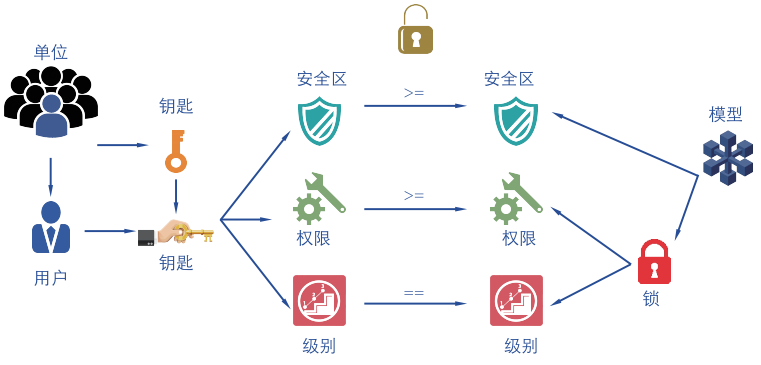 KingFusion3.5產品根據現實生活中人們對鑰匙和鎖的一套管理應用模式,創建了一套邏輯嚴密、功能完備的安全體係,用於實現MES係統從開發到運行各個環節的安全保護。無論多複雜的權限係統都能用 KingFusion3.5平台組態實現。